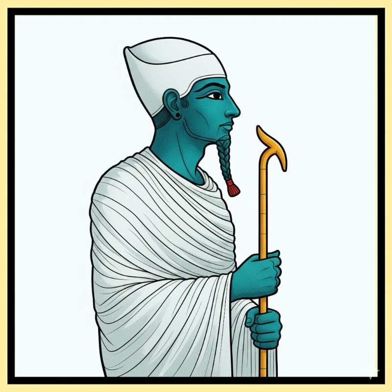 He was represented as a mummified man wearing a tight-fitting cap. Being wrapped like a mummy gave him the appearance of being unchanging and eternal. It also connected him to Osiris and the world of the dead, reinforcing his role in transformation and rebirth as a creator of structures and ideas.