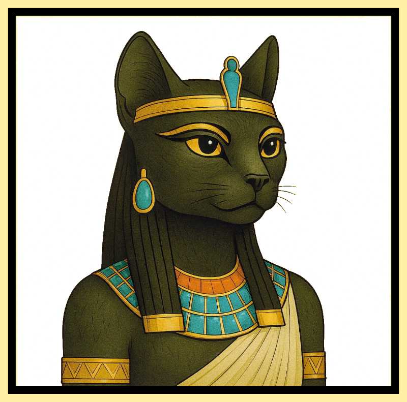 Bastet was the ancient Egyptian goddess of the home, fertility, protection, and cats. She evolved from a fierce lioness deity into the beloved cat goddess, with a gentler, more domesticated nature.