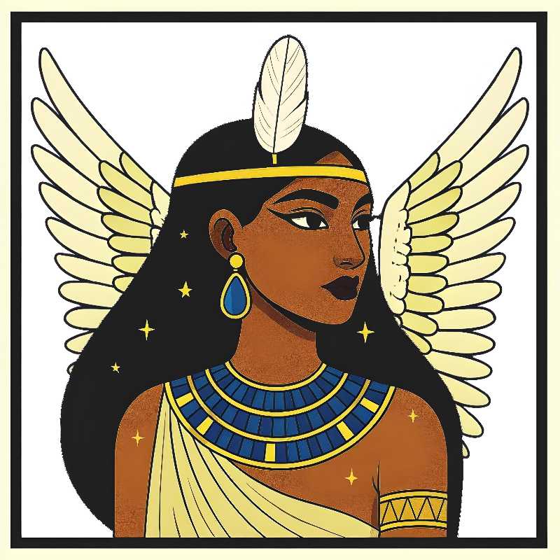 Ma'at also guided Egyptian law, governance, and personal conduct. The ancient Egyptians were expected to live 'in Ma'at', meaning truthfully, respectfully, and in balance with others and nature. She was depicted as a woman wearing an ostrich feather on her head, or sometimes simply represented by the feather itself.