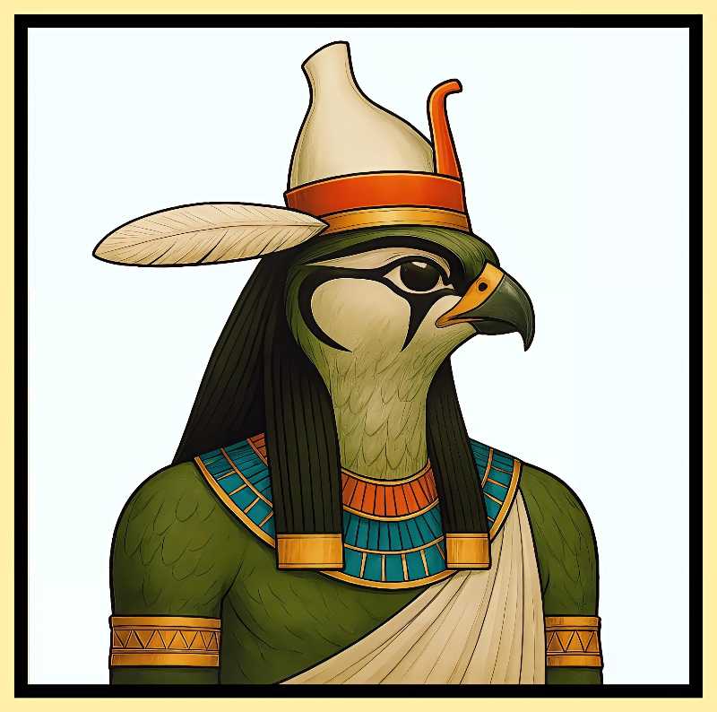 His falcon head represented the sky, divine protection, and kingship. His eyes were said to be the sun and moon, and the falcon's sharp eyesight inspired the Eye of Horus, a symbol of protection and insight. As a falcon, he could soar over the world, watching over it.