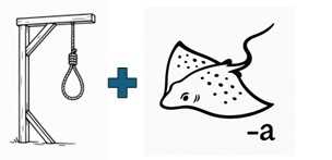 The picture matching the portmanteau word 'hangry' is a picture of a gibbet, for 'hang' and a ray, minus the letter 'a', which leaves 'ry'.
