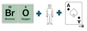 The periodic table symbols for bromine and oxygen, plus a man, plus the 'ace' card without its 'a' combine to make a match for the portmanteau word 'bromanace'.