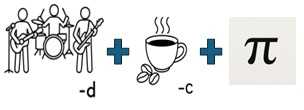 The picture that matches the portmanteau 'cosplay' is a cosine (cos) wave and the 'play' button on a recording device.