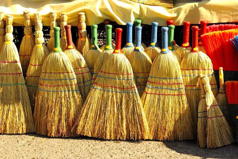 2. "The staff or handle of a broom"