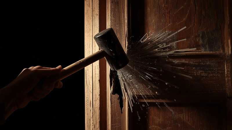 The novel was released in 1977. Unlike the film, Jack doesn't break down a door with an axe but rather a heavy roque mallet from a croquet set as pictured here.