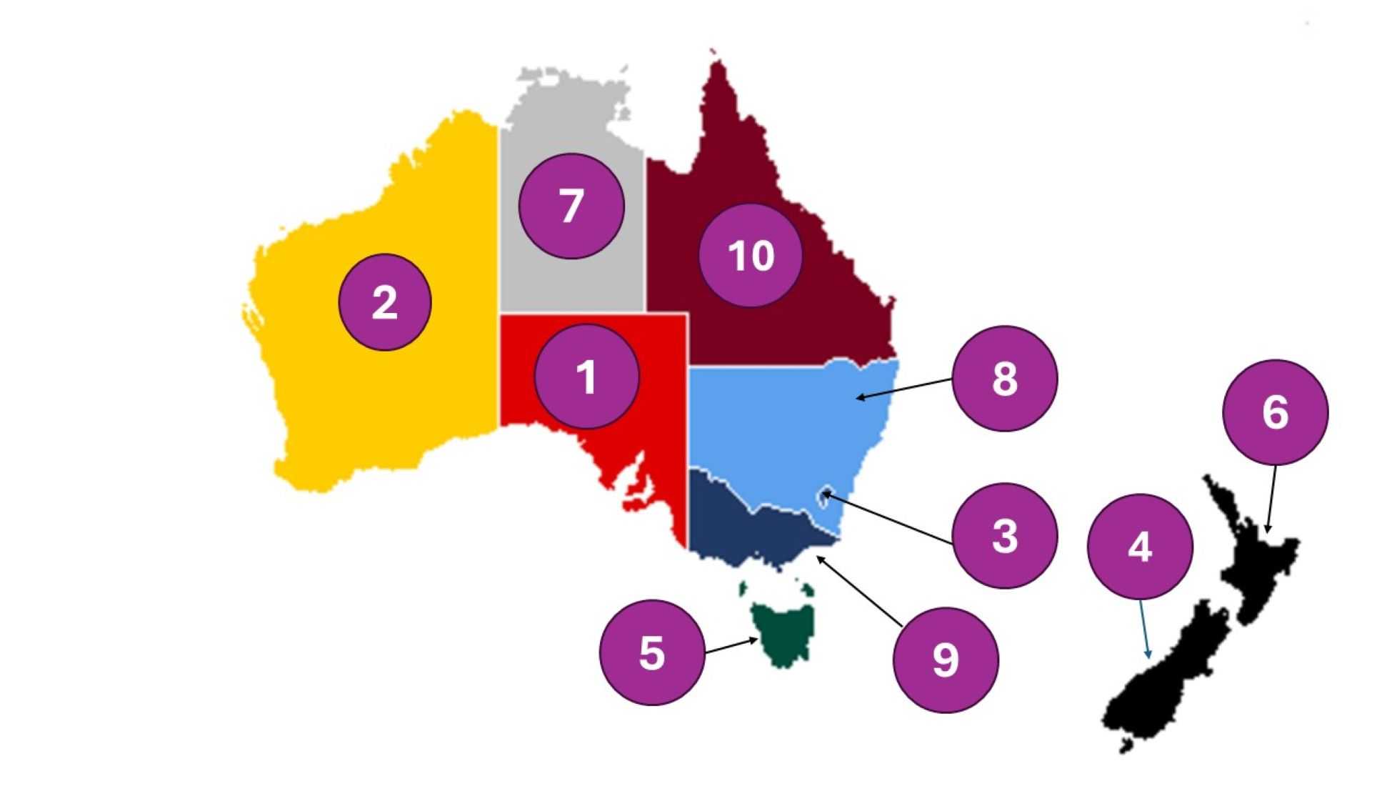 Match the stories with the state, territory or island that they're set in. Some hints as to the settings have been placed in brackets.