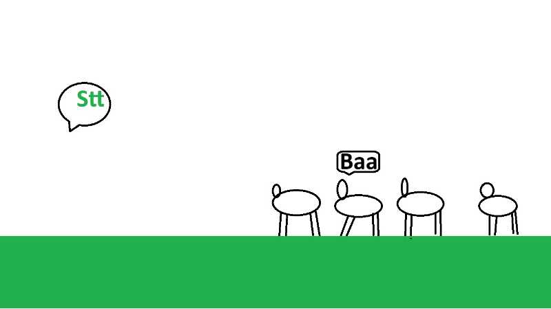 Another text balloon admonishes the sheep or lambs to shut up: "Sst".