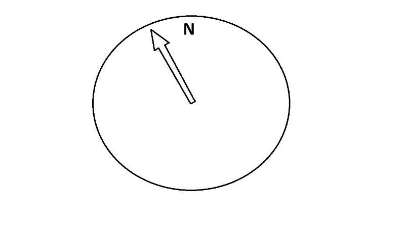 What can you see on this sketch? A dial with the letter N on top, which indicates it is not a clock but a compass. And the needle points not to the north, but slightly off to the left - indeed, "North by Northwest".