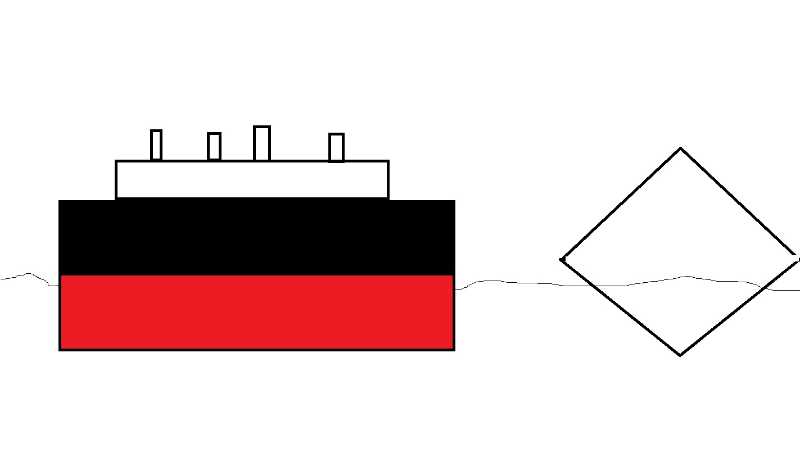 What's this sketch? You'll probably recognize a large ship, and there is a huge whitish object too. I tried to draw the "Titanic" as it was heading towards the iceberg...