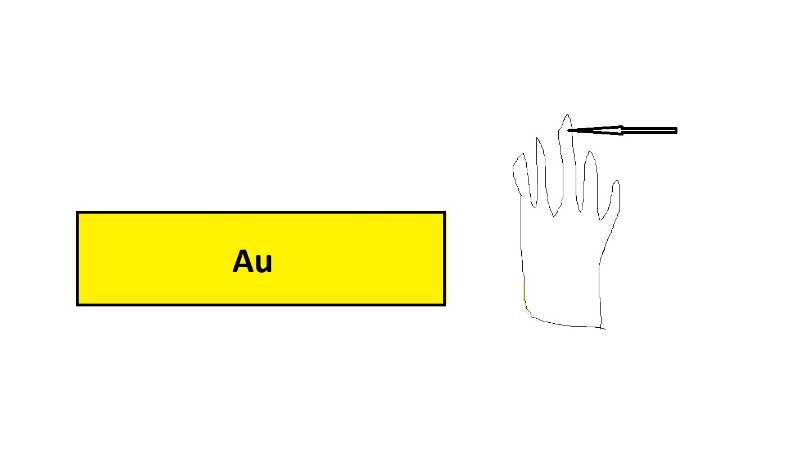 Here's a sketch of a block of something yellow (inscribed with the abbreviation Au) and an open hand. Now what could this mean? The block is of course gold (Au being the symbol for the element), and an arrow points to one of the fingers. Put these together and you have the movie title "Goldfinger".