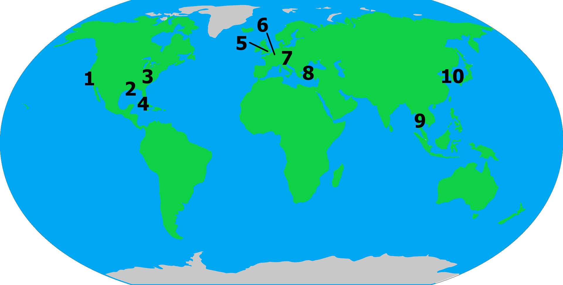 I'll provide the band/artist and they'll have a popular song that contains a city marked on the map. Match the connected song title to the correct number.