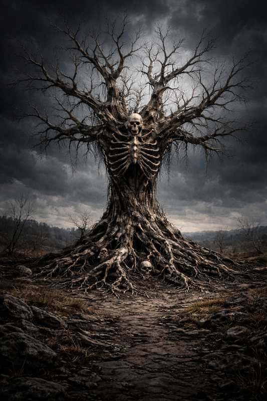 "Skeleton Tree" is the name of both song and album (2016) by Nick Cave and the Bad Seeds. While recording the album, Nick Cave's son had an accidental fatal fall, and several lyrics were changed to feature death, loss, and grief throughout the album. The recordings had not been fully 'polished' as prior albums had been, but given the raw emotion of Cave's vocals and the underlying themes now present, it was determined that the album should remain, to that end, "unfinished".