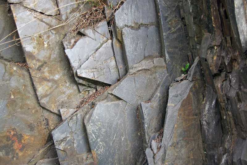 Slate is a type of metamorphic rock. It forms when shale is buried deep underground and changed by heat and pressure, causing its minerals to align so it can split into thin, flat sheets. It is widely used as a building material: roofing tiles, flooring, wall coverings, and outdoor paving are all common uses.