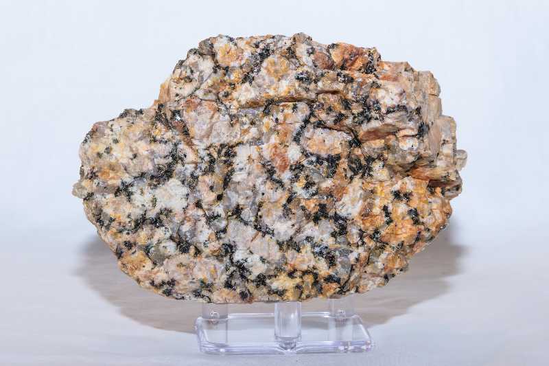 Granite is a type of igneous rock. The molten rock that forms it cools slowly underground over a long period of time, giving large mineral crystals time to grow. Granite is made mainly of quartz, feldspar, and mica, which give it a range of colors. Granite is commonly used in construction, cut into blocks or slabs for buildings, bridges, monuments, and even countertops.