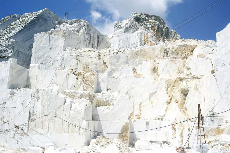 Marble is a type of metamorphic rock. When limestone is buried deep underground and exposed to heat and pressure, marble forms as its calcite crystals grow and interlock, giving it a smooth texture. It is often white but can also contain colored streaks or veins caused by other minerals. Marble can be polished to a smooth, glossy finish, and this quality has made it a valued material for monuments and sculptures for thousands of years.