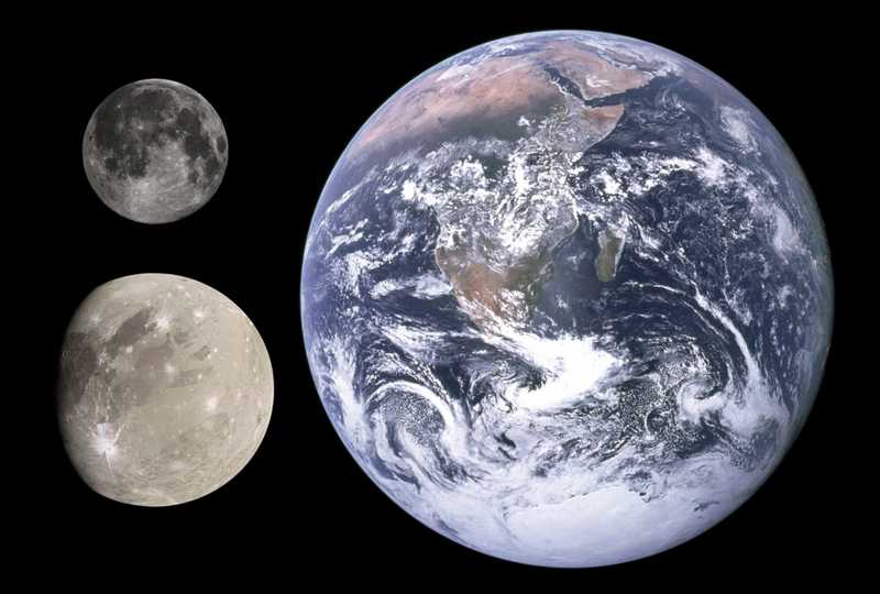 4. After passing through the asteroid belt without incident, you approach the orbit of Jupiter and goggle at the sheer number of moons orbiting this giant planet. You zoom in to have a better look at its biggest moon, Ganymede.