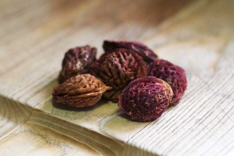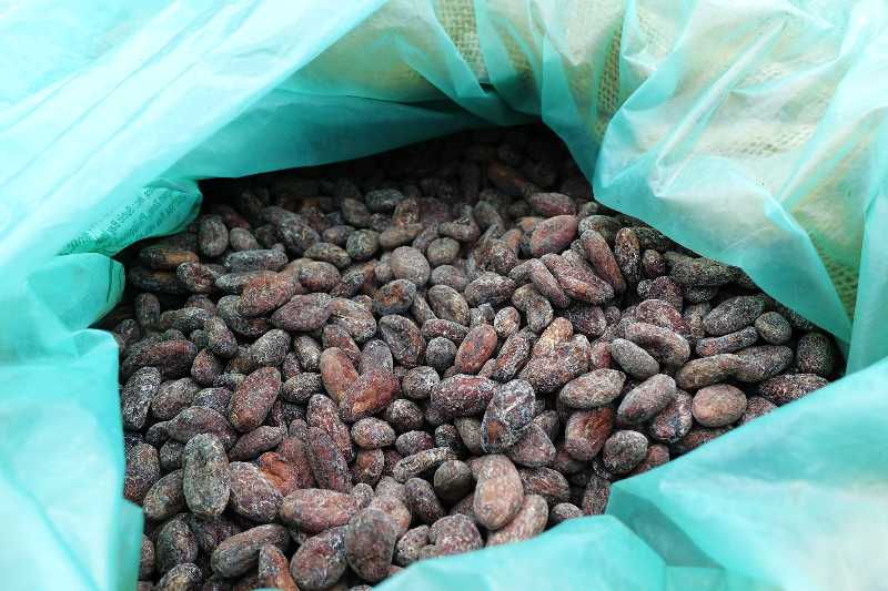 Cacao seeds, often called cocoa beans after they are fermented and dried, are large, oval, and slightly flattened. They range in color from pale brown to deep purple, depending on the variety and ripeness. Each seed measures about one inch (2.5 centimeters) long and is surrounded by a sweet, white pulp inside the cacao pod.