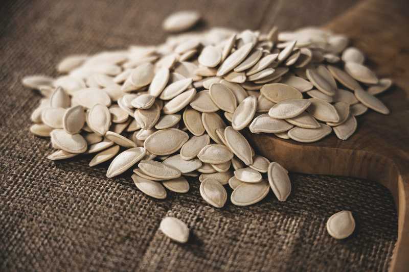 Pumpkin seeds are flat, oval, and smooth with a hard outer shell. They are usually white or cream-colored, though the inner kernels (often called "pepitas") are green. Each seed measures about three-quarters of an inch (2 centimeters) long and contains a high amount of nutrients and oil.