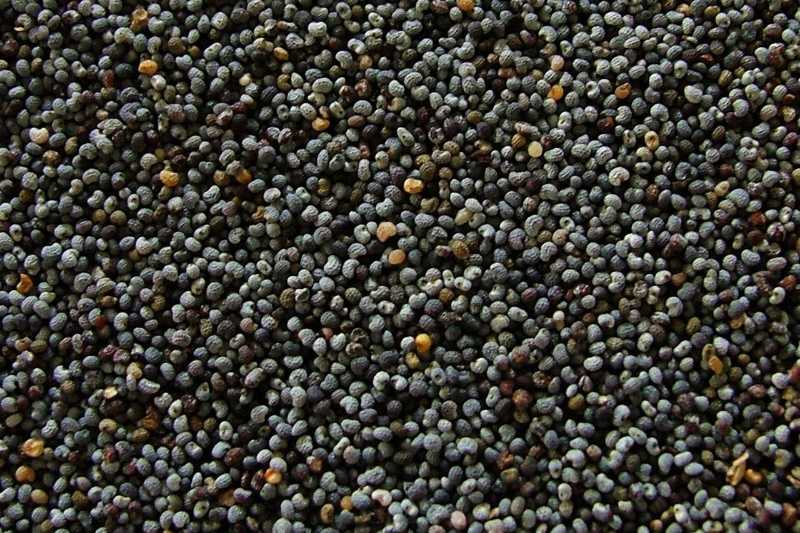 Poppy seeds are very small, round, and slightly rough in texture. They are blue-gray to black, depending on the variety. Each seed is tiny, being about the size of a grain of sand.