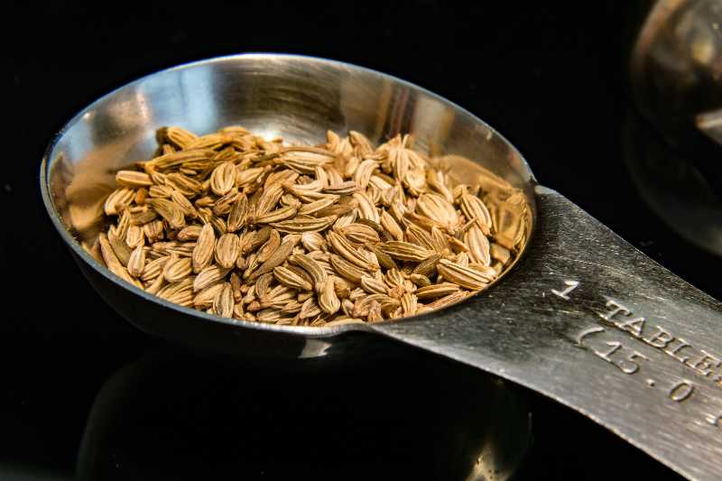 Fennel seeds are small, oval, and slightly curved with fine ridges along their surface. They are typically greenish-brown or pale yellow and measure about one-fifth inch (0.5 centimeters) long. The seeds have a mild, sweet aroma and can be used for seasoning or in tea.