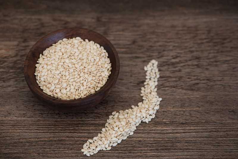 Sesame seeds are tiny, flat, and oval-shaped with a smooth texture. They range in color from white or tan to brown or black, depending on the variety. Each seed is about one-tenth inch (0.25 centimeters) long and contains a high amount of oil, which gives it a rich, nutty flavor.