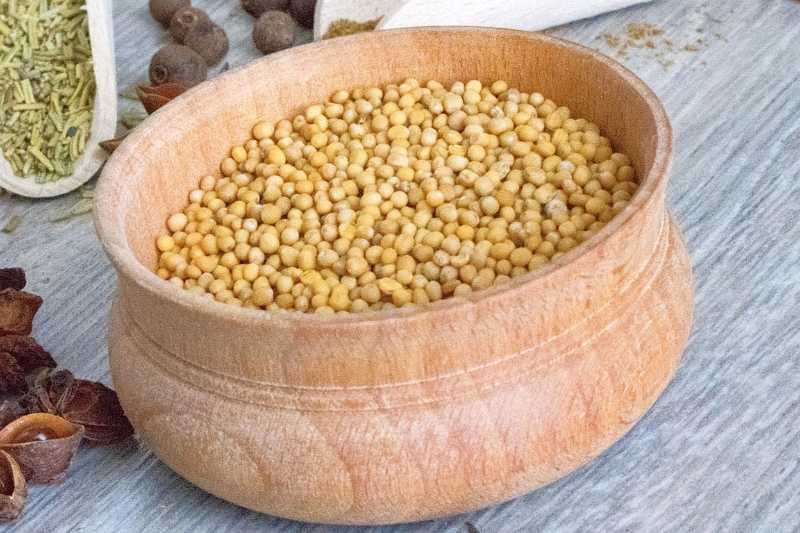 Mustard seeds are small, round, and smooth, varying in color from yellow or brown to almost black, depending on the type. Their size can range greatly, from about one twenty-fifth to one eighth inch (1 to 3 millimeters) in diameter and have a hard outer shell. They are commonly used as a spice and for producing mustard oil or condiments.
