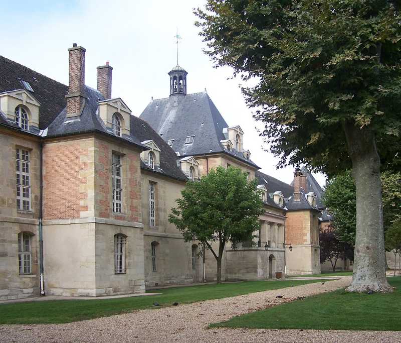 2. This is the Hôpital Saint-Louis in Paris, France. Built in 1607 for plague victims, what was the main design centered around?