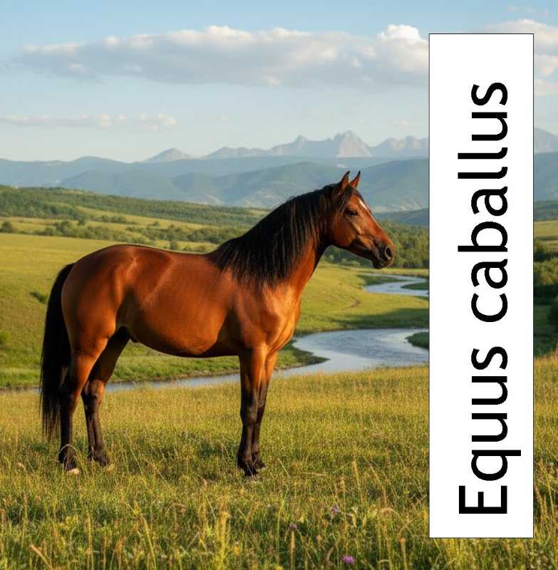 The Equus caballus (or, perhaps more correctly, Equus ferus caballus) is one of two subspecies of domesticated horse. It has evolved over the last 50 million years or so from a small North American multi-toed animal to today's large single-toed horse. Being prey animals, horses have a strong fight-or flight response.