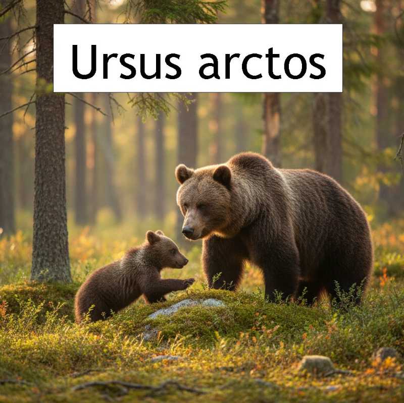 The brown bear (Ursus arctos) is another of those animals that is native to Eurasia and North America. It lives in forests and is an omnivore, eating berries, grass, mushrooms, acorns, roots and bulbs as well as insects (such as ants), fish, birds and mammals.