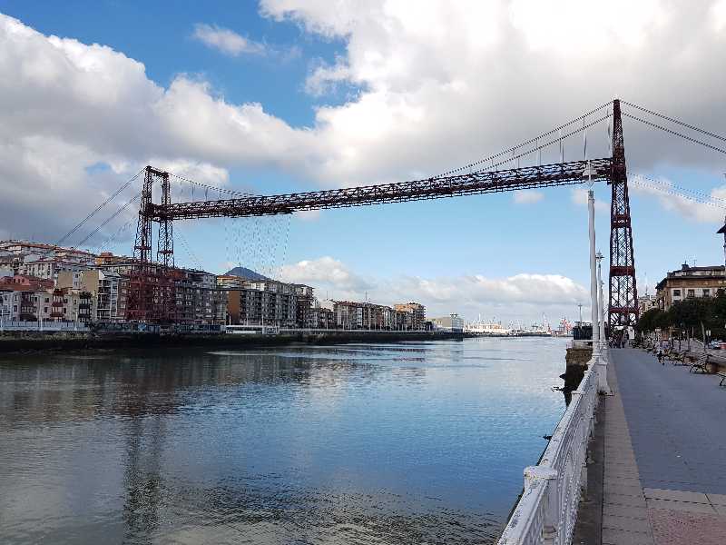 1. Our first stop in Spain is the province of Biscay. Here in Biscay, a popular cocktail of red wine and Coca-Cola was named Kalimotxo. I hand you a drink of your own, and point across the Nervion River. We didn't stop in Biscay just so I could have a taste of my personal favorite cocktail; it's also the first stop of our Spanish tour of World Heritage sites. I am pointing to the Vizcaya Bridge, which is what type of bridge?
