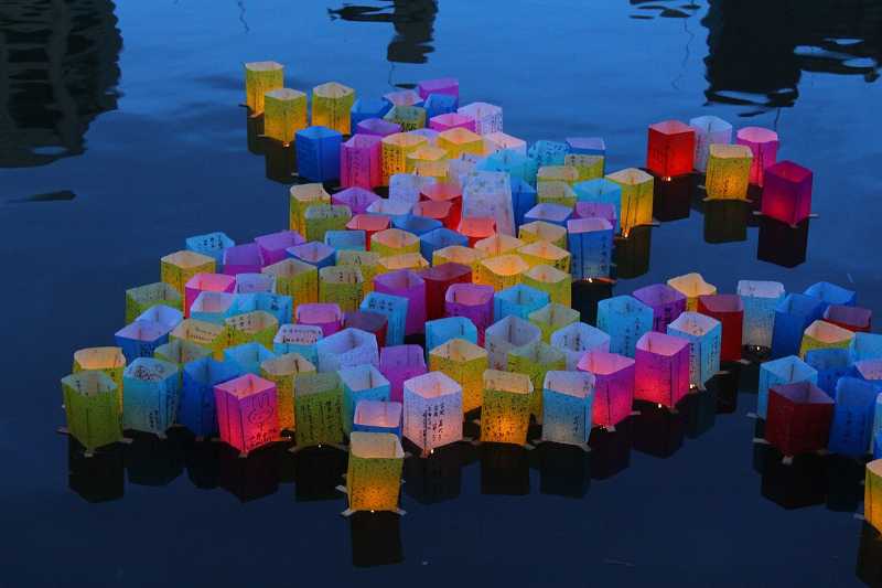 1. These lanterns, floating on the Motoyasu River, are part of the annual ceremonies commemorating the dropping of an atomic bomb on the city of Hiroshima. On what day of the year was this photo taken?