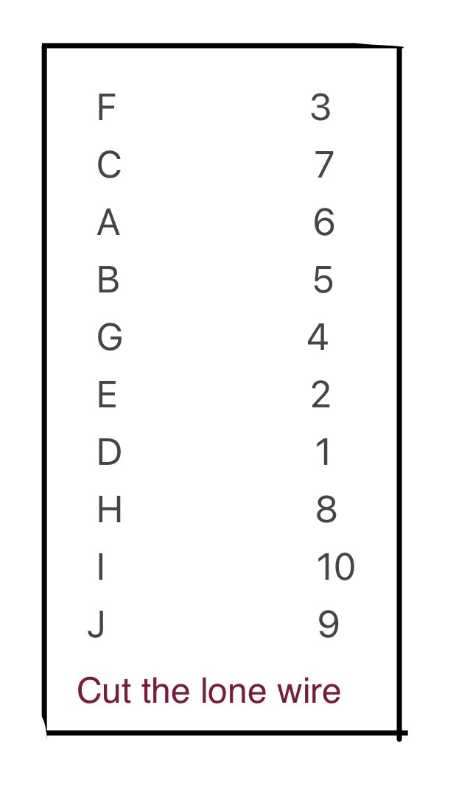 Tell me; if you successfully connect the left letters to their corresponding right numbers, which letter wire will you exclude, or "cut", as the lone wire?